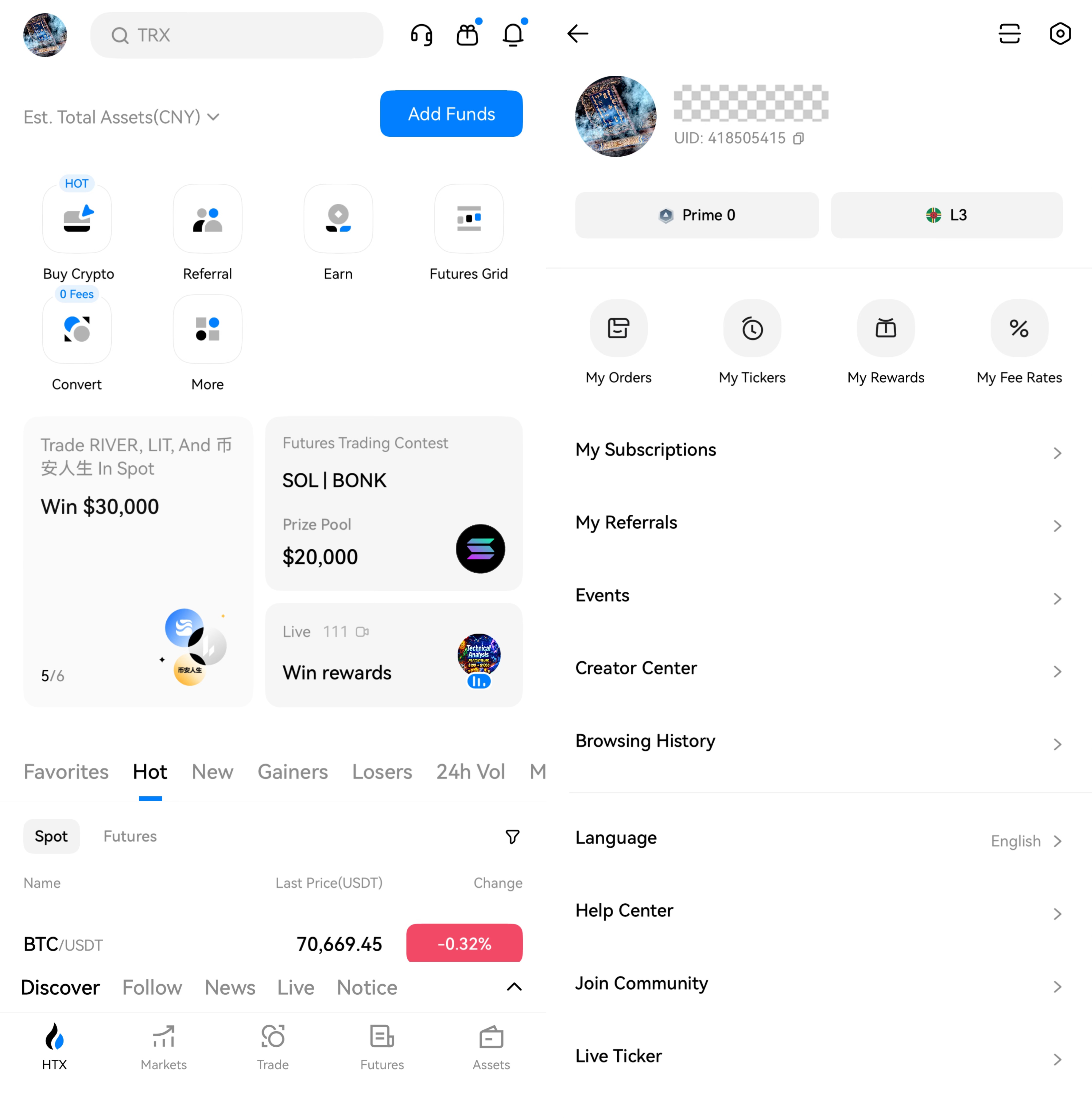 - ✅ Your HTX account UID.