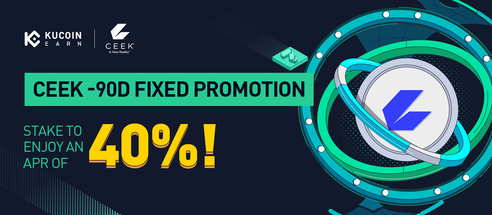 KuCoin Earn will be launching the CEEK Fixed Promotion at 10:00:00 on April 20, 2022 (UTC). The product that will be available is “CEEK-90D” with an APR of 40%.