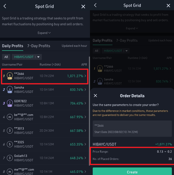 As of 09:00 on August 3rd, the top 1 APR of HIBAYC/USDT on the Spot Grid market is up to 1071.27%. The price range is set as 0.13-0.2, which can be used as a reference for you.