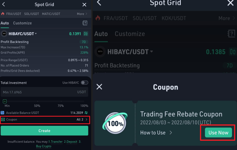 To celebrate HIBAYC being listed on the KuCoin Trading Bot, we will be launching a campaign to give away ZERO Trading Fees for creating HIBAYC/USDT trading bot.