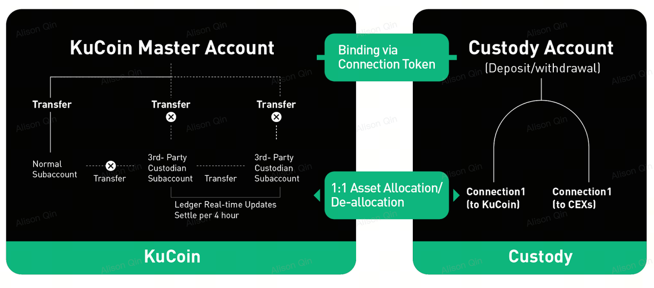 Through this integration, institutional clients can now establish a dedicated Custodian Sub-Account under their KuCoin main account. Each Custodian Sub-Account is directly linked (1:1) to the client’s Cactus account, ensuring transparent and verifiable asset delegation.