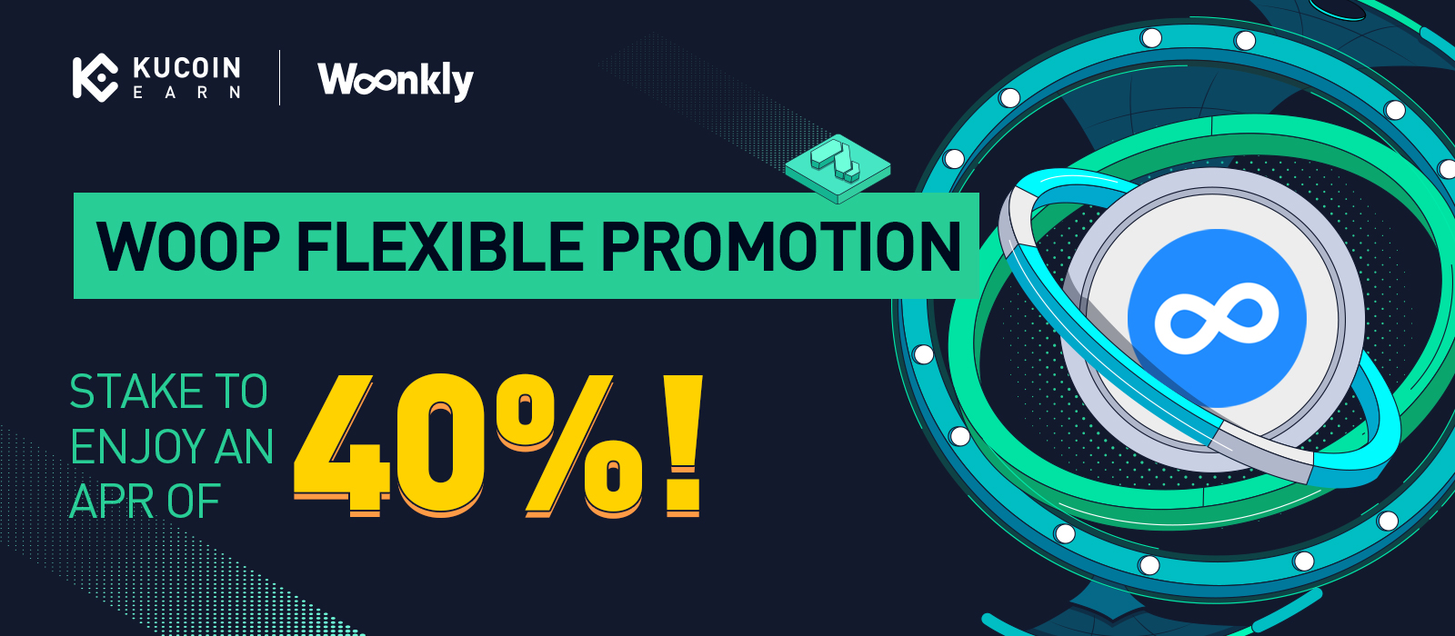 KuCoin Earn will be launching the WOOP Flexible Promotion at 10:00:00 on April 25, 2022 (UTC). Stake to enjoy an APR of 40% (excluding POL mining)!
