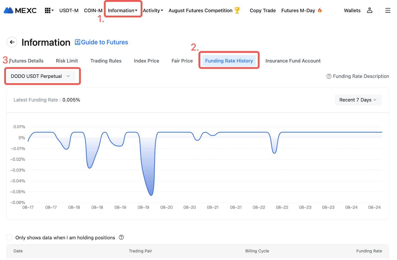 For the latest funding rate details, please refer to Information - Funding Rate History.