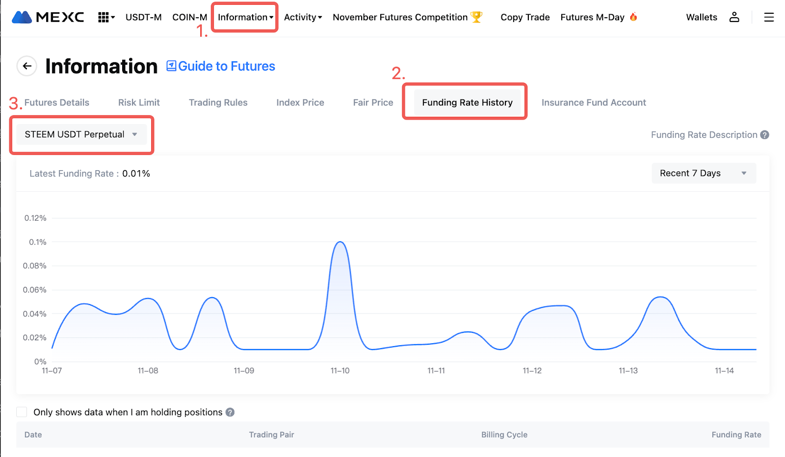 For the latest funding rate details, please refer to Information - Funding Rate History.