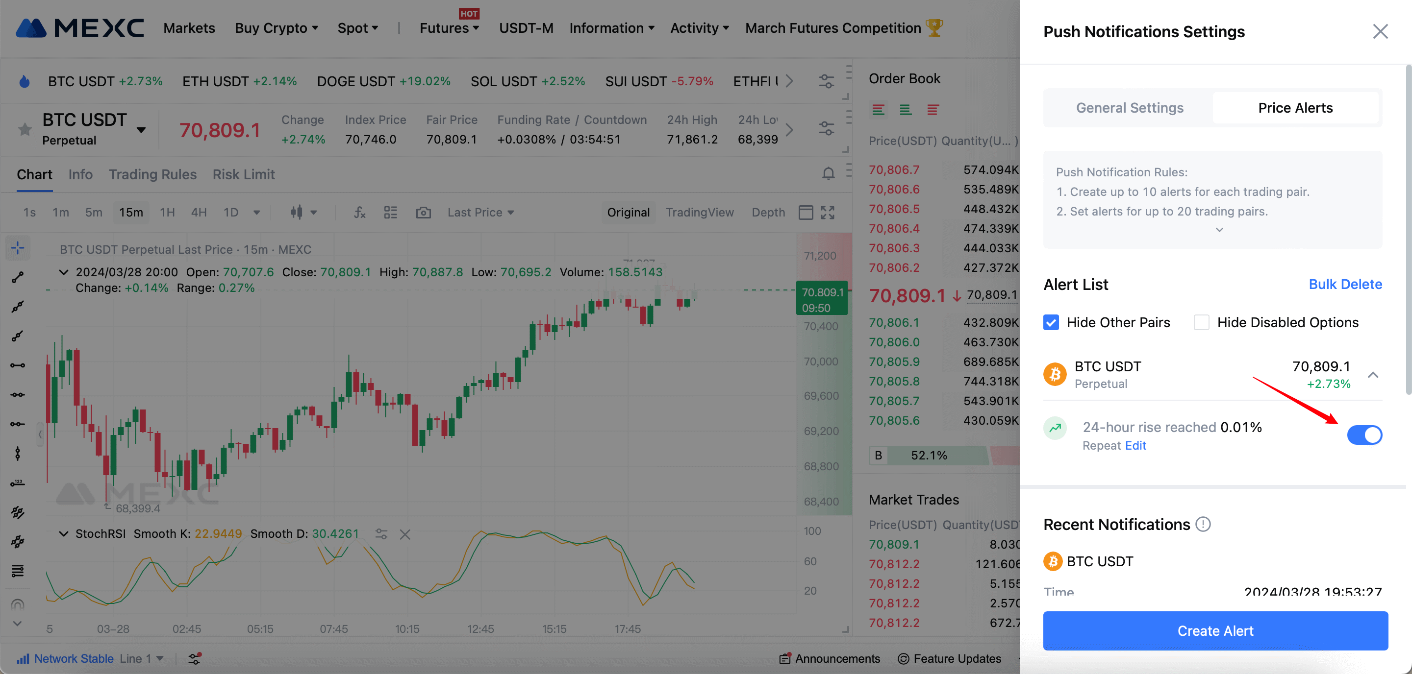 MEXC Has Launched Futures Price Alert Toggle Button and More New Features (March 28, 2024)
