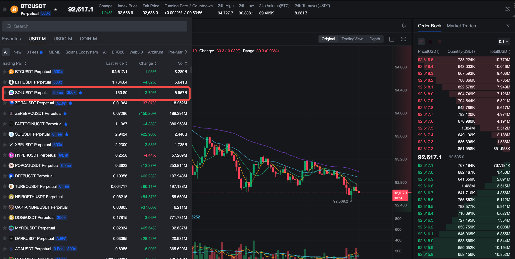 Step 2: Select a Futures pair that supports up to 300x leverage. Currently supported pairs include SOLUSDT, XRPUSDT, DOGEUSDT, and ADAUSDT.