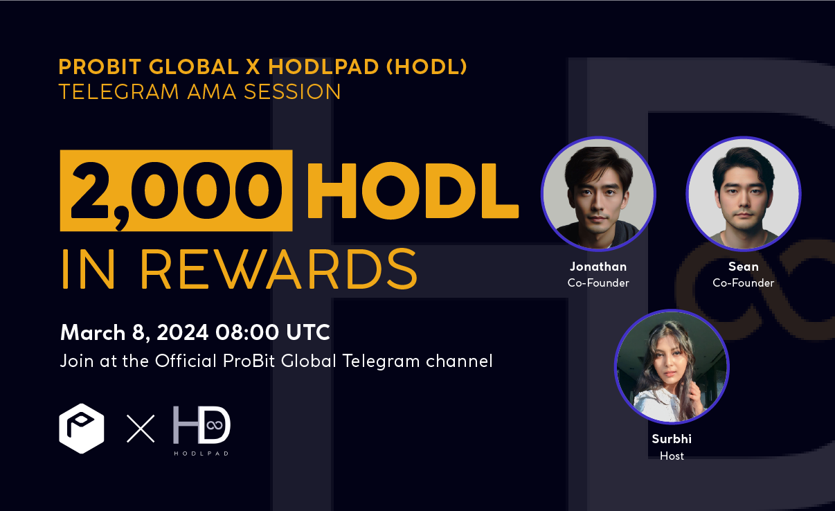 ProBit Global x HODLpad (HODL) Telegram AMA Session: Win 2,000 HODL March 8, 2024 at 08:00 UTC