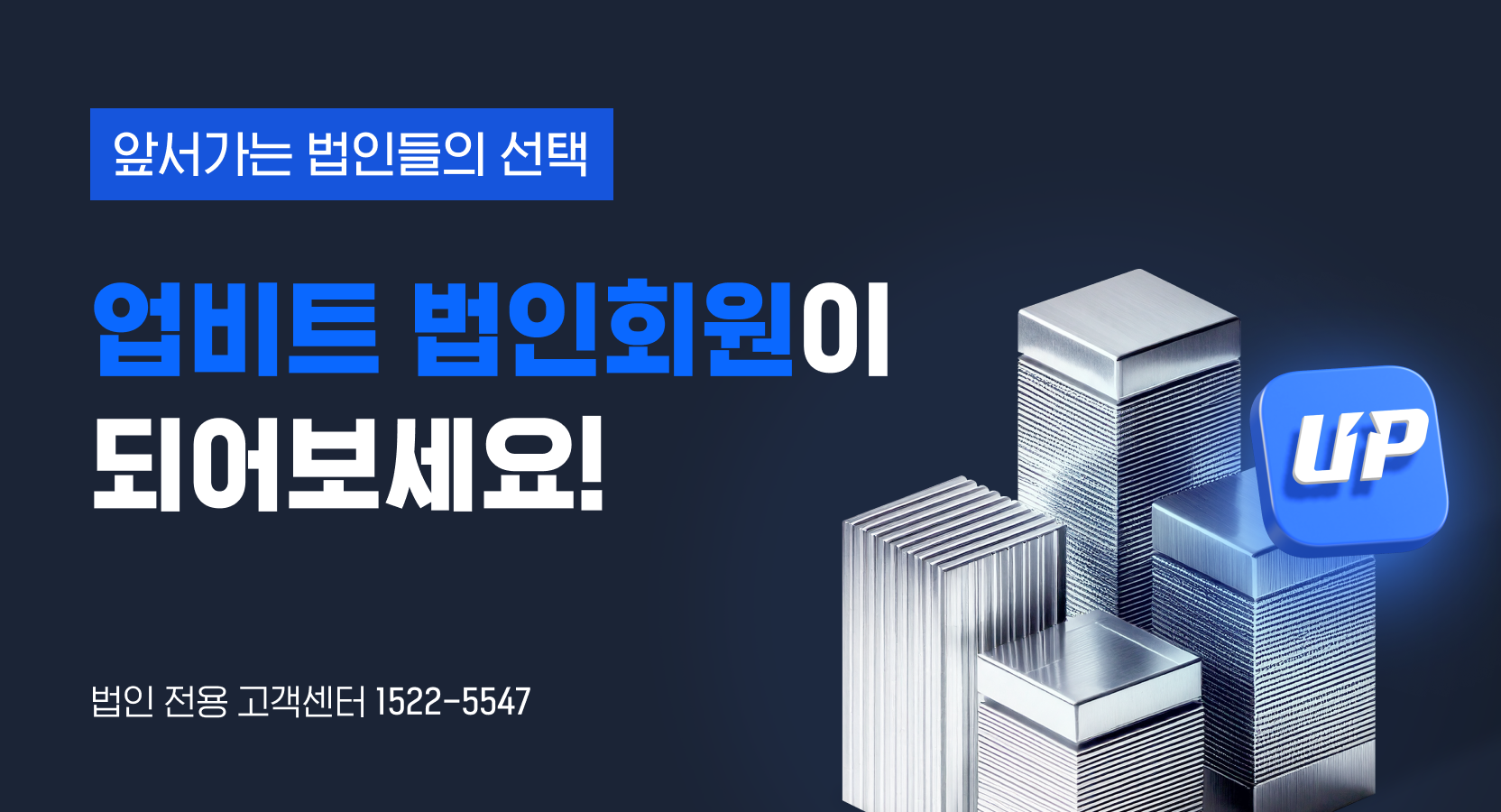 업비트 법인 회원 가입 문의 페이지가 새롭게 오픈되었습니다.→ 법인 회원 가입 문의 페이지 바로가기