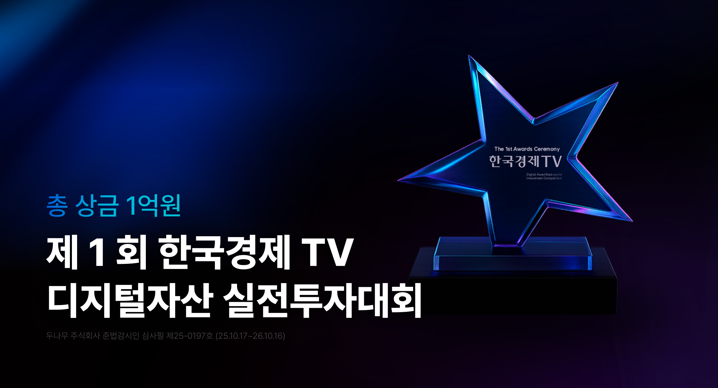 총 상금 1억, 한국경제TV 디지털자산 실전투자대회 신청 오픈! ( 신규가입 3만원 이벤트)