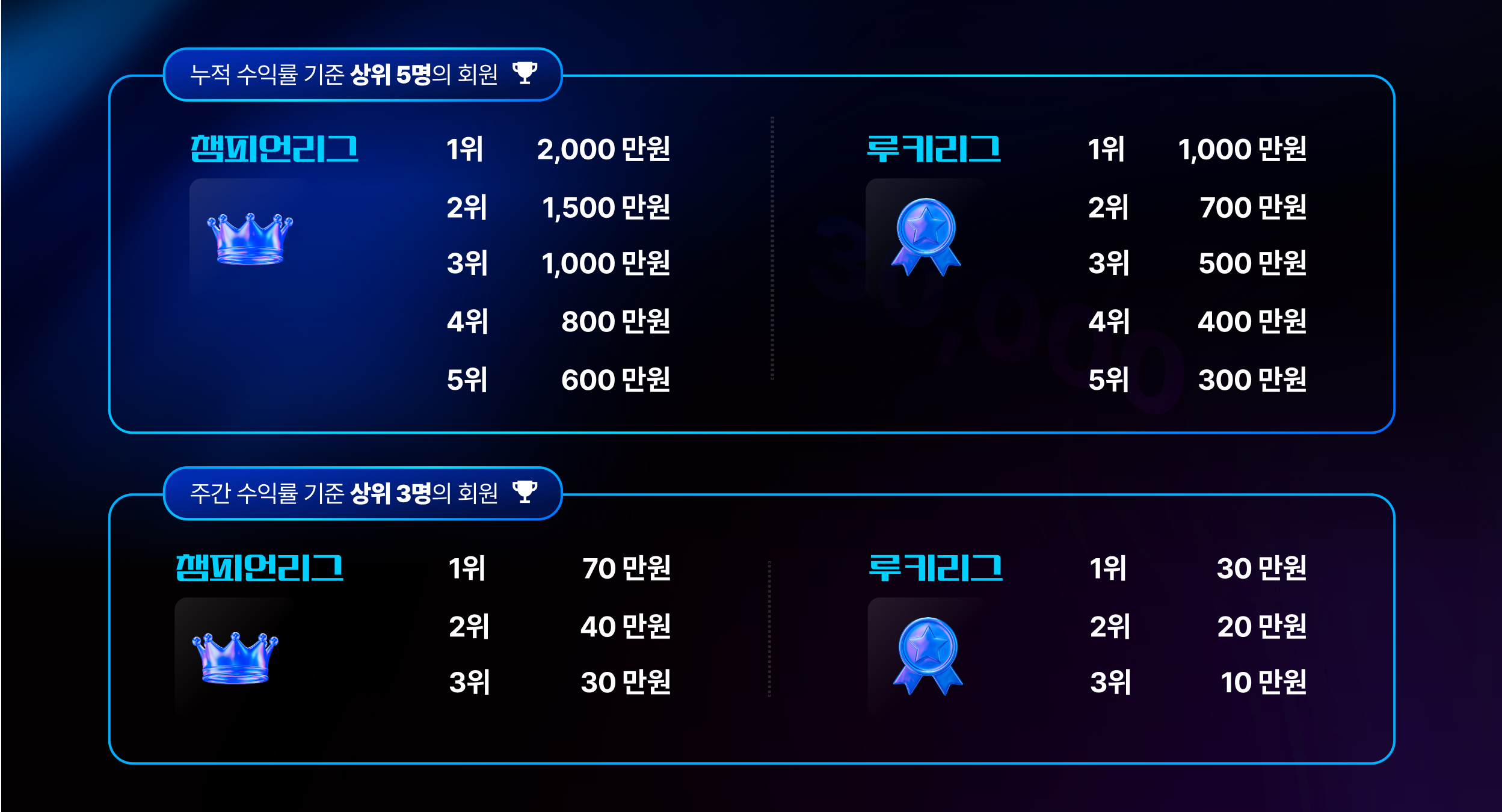 - 챔피언리그: 기초자산 1,000만원 이상
