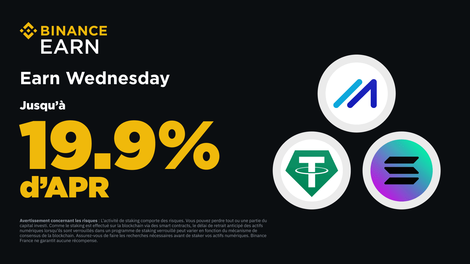 Binance Earn vous présente de nouvelles offres qui seront lancées chaque mercredi. Ne manquez pas le Earn Wednesday pour obtenir des récompenses grâce aux produits Simple Earn, BNB Vault, le staking d’ETH et bien plus encore.