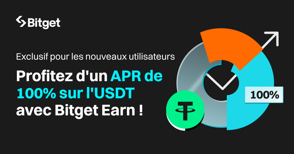 Exclusif pour les nouveaux utilisateurs. Profitez d'un APR de 100% sur l'USDT avec Bitget Earn !