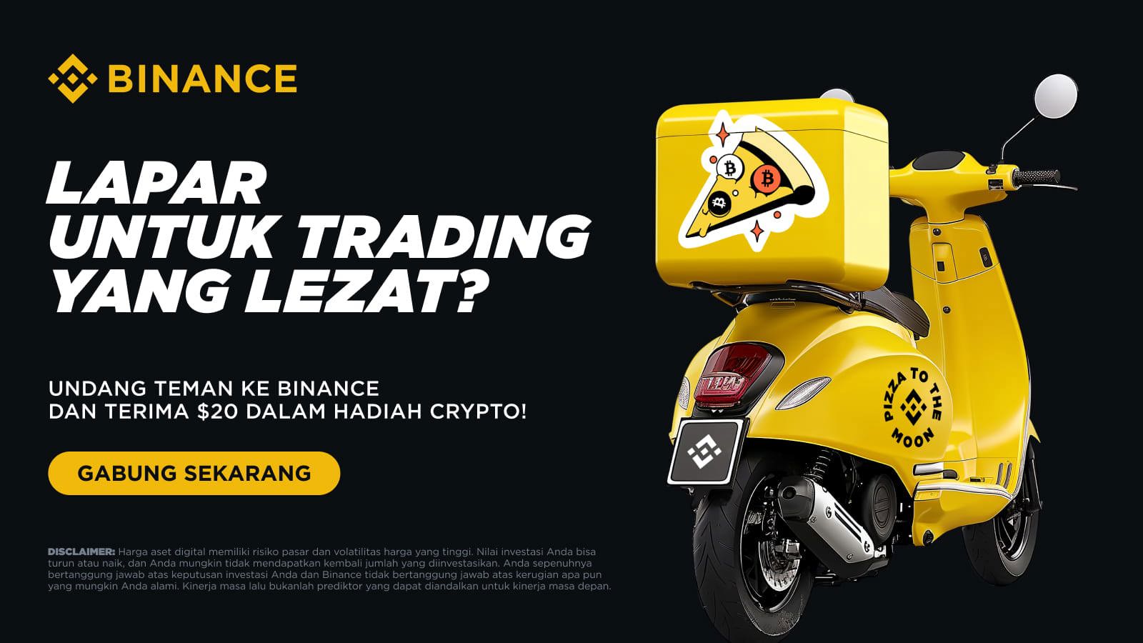 Untuk merayakan Bitcoin Pizza Day tahun ini, Binance dengan senang hati meluncurkan Aktivitas Pizza Day bagi semua pengguna yang berhasil mengundang teman mereka untuk mendaftar dan berdagang dengan Binance. Undang teman Anda ke Binance sekarang untuk mendapatkan bagian hadiah dari voucher token senilai 500.000 USDT selama reward masih ada!