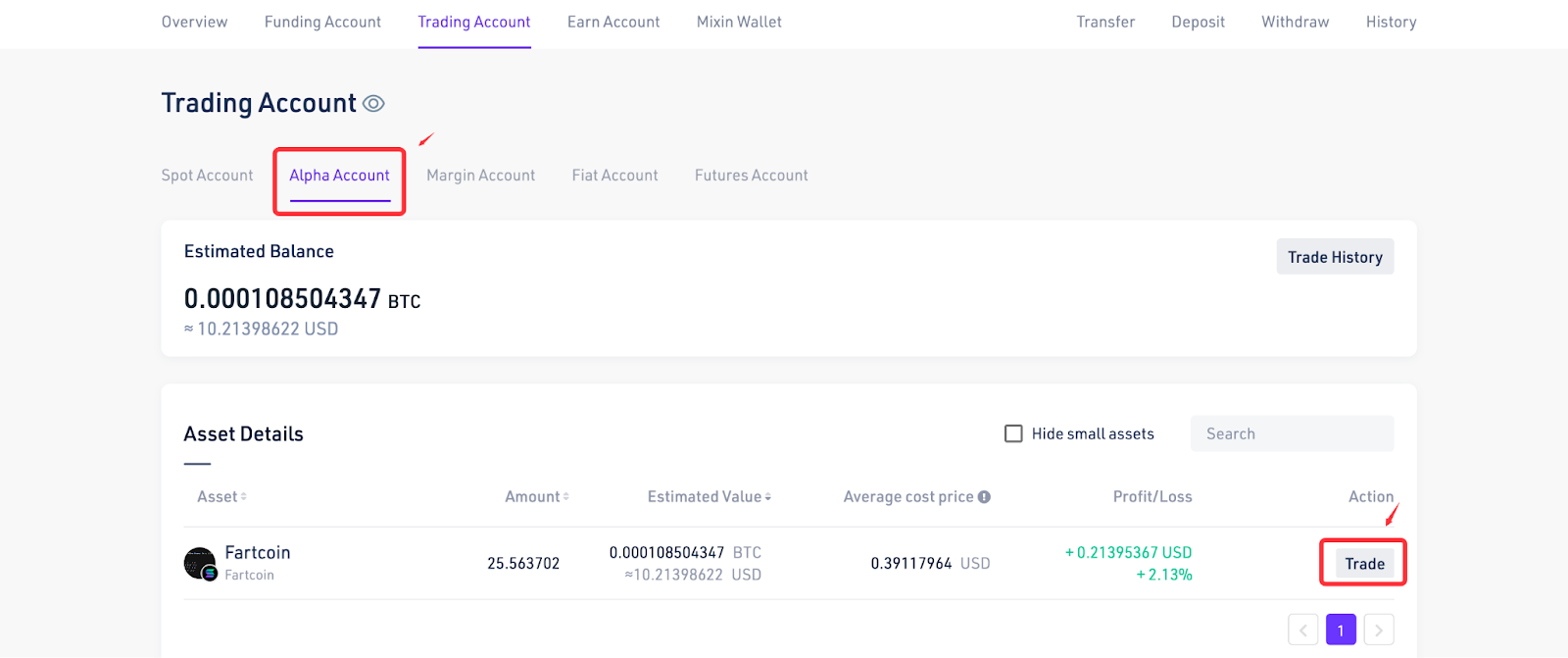 - The Alpha tokens you purchase automatically go into the "Alpha Account." Please note that assets in the Alpha Account can only be traded and cannot be transferred out or withdrawn.