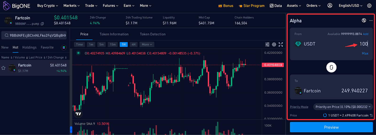 BigONE Alpha is a new type of innovative on-chain digital asset trading zone established on the BigONE website, where Alpha tokens can be queried or traded.