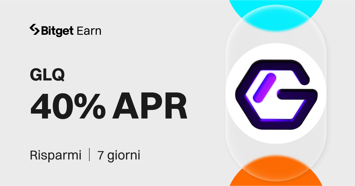 Listing di GraphLinq Protocol (GLQ) sui Risparmi di Bitget Earn. Iscriviti subito ai Risparmi di GLQ per approfittare di un APR del 30%. L’offerta è limitata, affrettati!