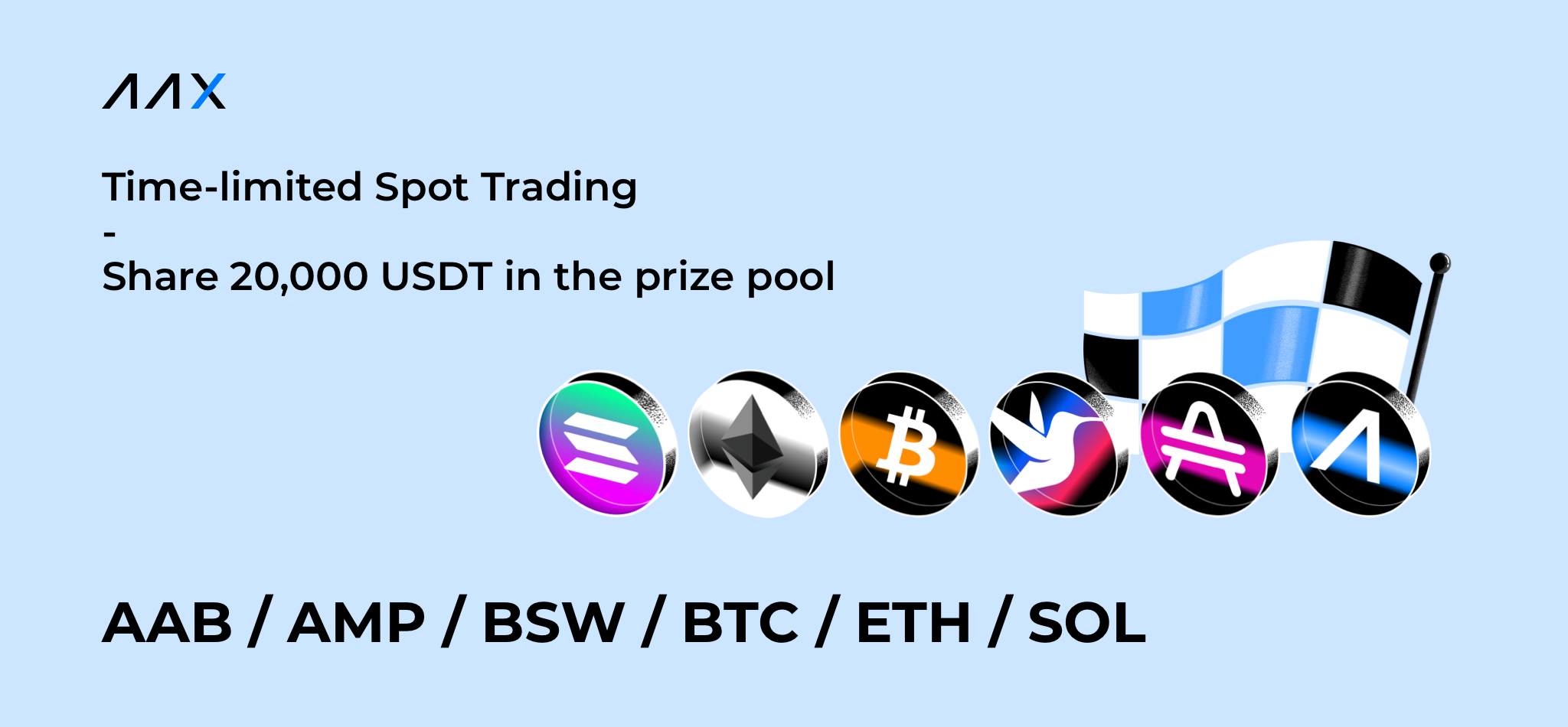 ユーザーの取引に対する高まる熱意に応えるため、AAX は現在、AAB/AMP/BSW/BTC/ETH/SOL の期間限定取引イベントを開始し、賞金プールの 20,000 USDT を分け合うようユーザーを招待しています。