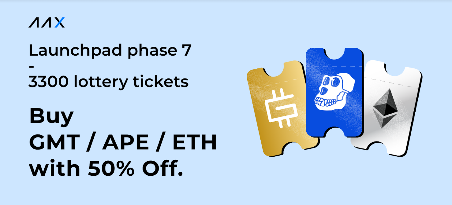 AAX は Launchpad Phase 7 を開始します。このフェーズの半額トークンは GMT、APE、ETH で、最大 50% オフとなります。具体的な詳細は次のとおりです。