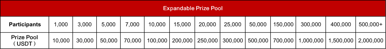 8. The final prize pool is determined by the number of valid traders, the number of valid traders = the number of participants registered in the competition - the number of users who have not opened positions during the competition - the number of users determined by the risk control system as a user who violated the event rules (including but not limited to batch registration of inflated prize pools, matching transaction, self-dealing, etc.).