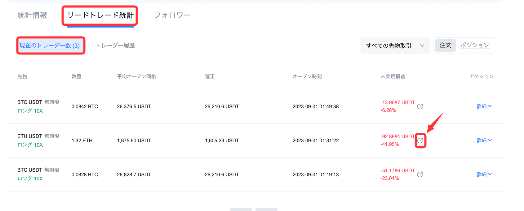 2.1 現在のリードトレードの利確/損切り統計の共有機能(オープンポジション)