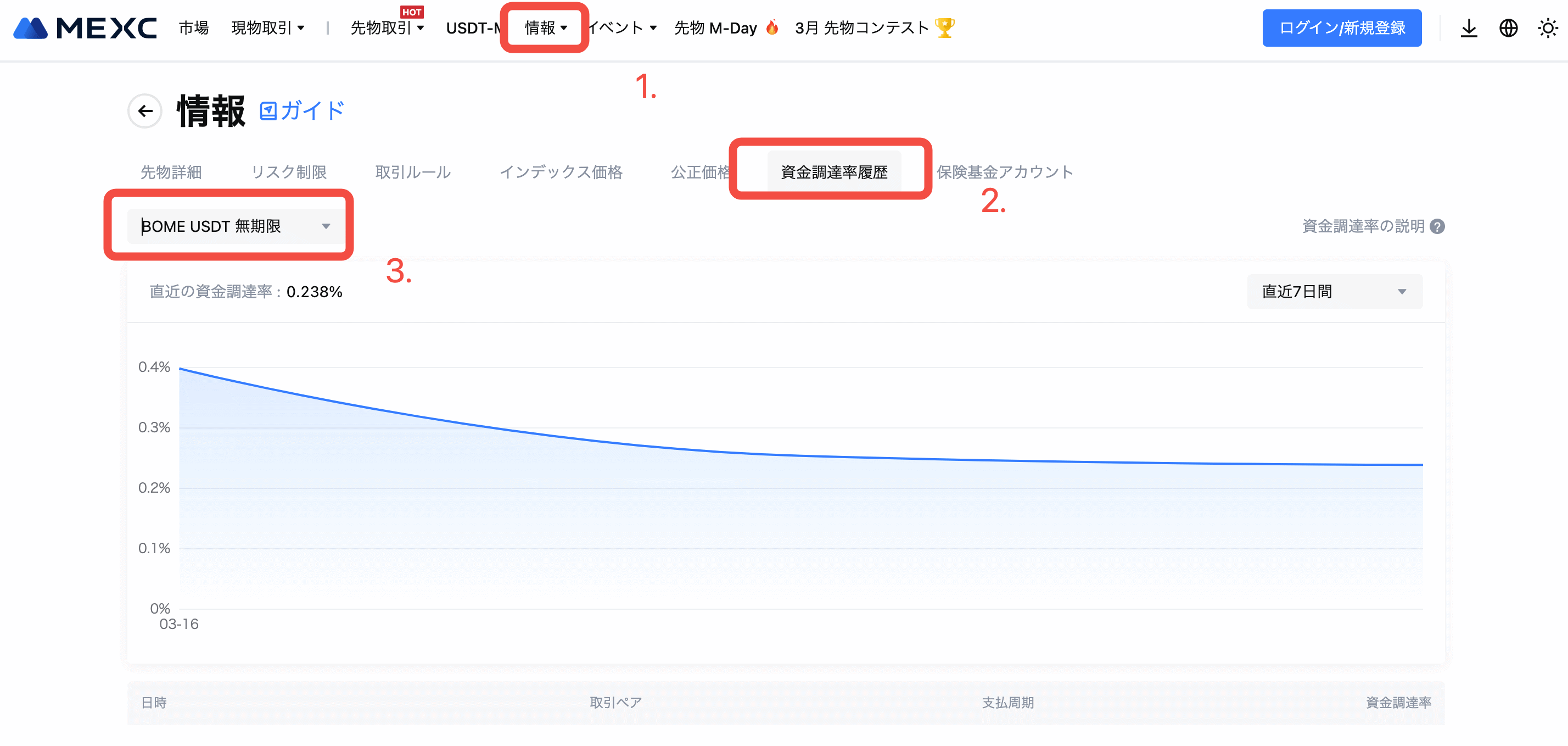 最新の資金調達率の詳細については、「情報 - 資金調達率履歴」をご参照ください。
