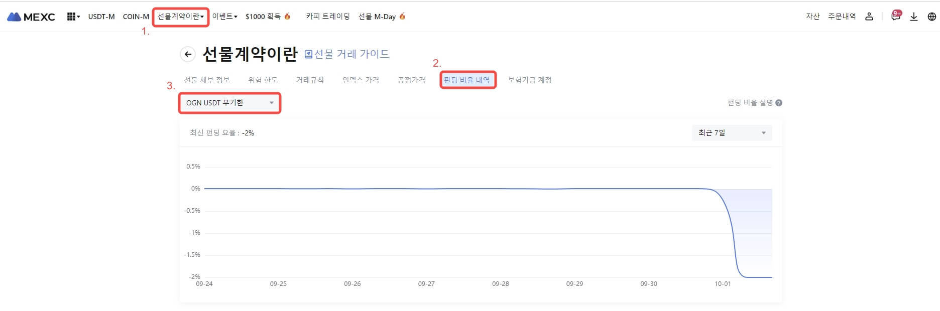 MEXC, OGN USDT-M 선물 펀딩 비율 정산 빈도 조정 (10/1)