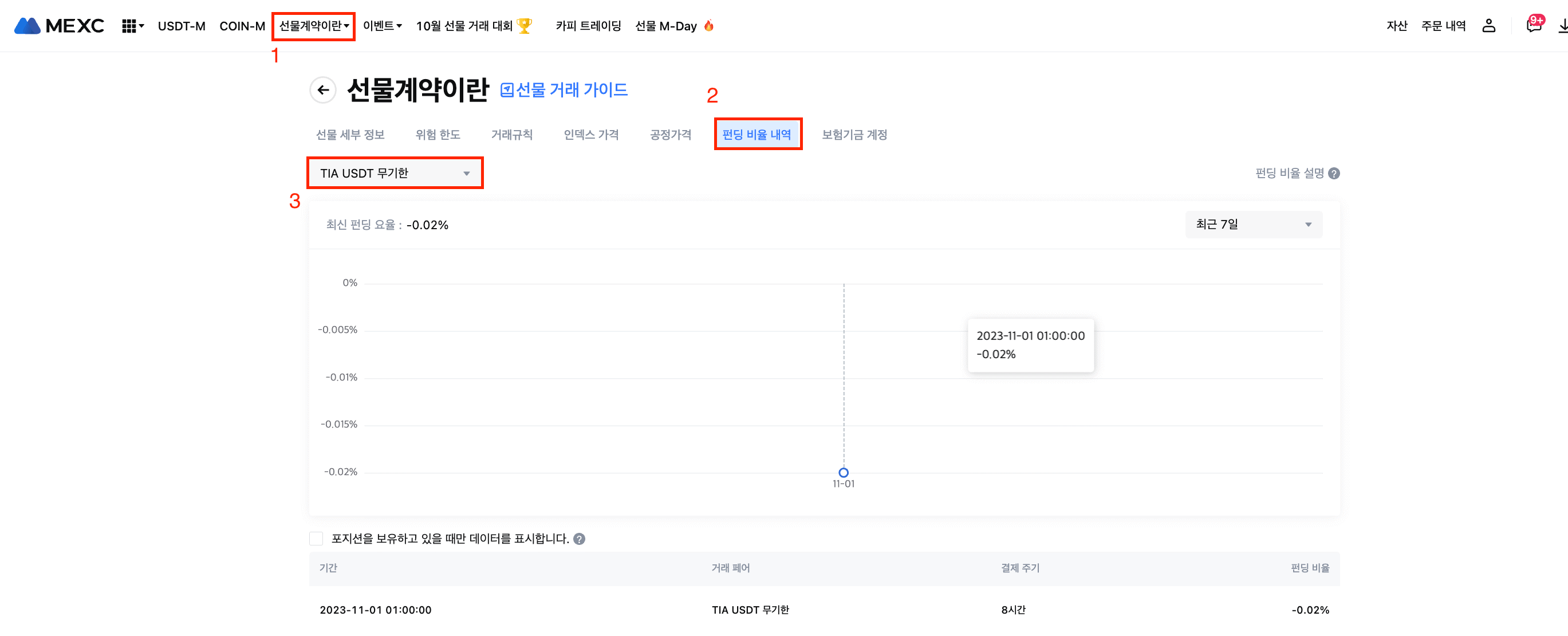 2023년 11월 1일 01:30 (KST)부터 MEXC 선물은 TIA USDT-M 선물의 펀딩 비율 정산 빈도를 4시간마다 한 번씩 조정합니다. 자세한 사항은 다음과 같습니다.