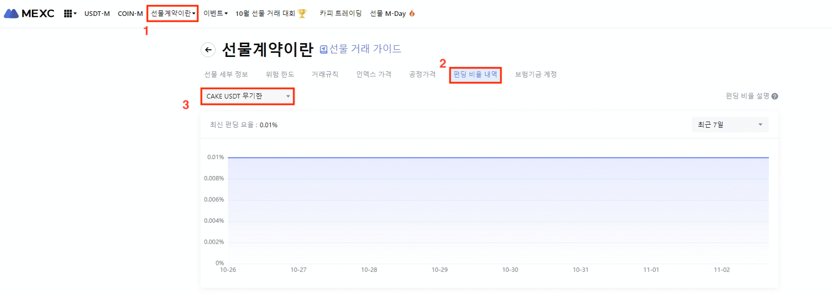 2023년 11월 1일 21:55 (KST)부터 MEXC 선물은 CAKE USDT-M 선물의 펀딩 비율 정산 빈도를 4시간마다 한 번씩 조정합니다. 자세한 사항은 다음과 같습니다.