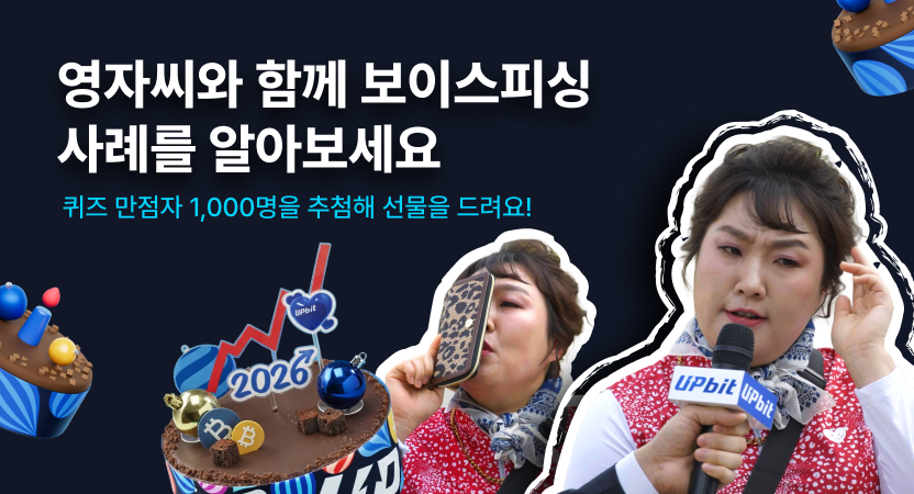 회원님의 소중한 자산을 지키기 위해 보이스피싱에 자주 활용되는 실제 사례들을 소개하고, 사전에 예방할 수 있도록 돕는 캠페인을 준비했어요.이번 캠페인에서 영자씨와 함께 다양한 사기 유형에 대해 알아보고, 퀴즈도 참여해 보세요!정답을 맞히신 분들 중 1,000명을 추첨해 업비트 위시 케이크 선물을 드려요.