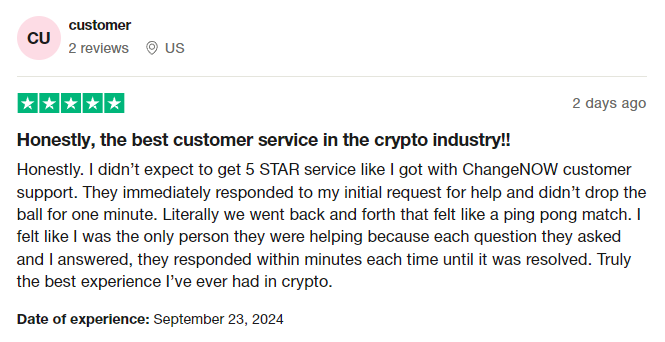 Due to this user-centric approach, ChangeNOW has earned an impressive 4.6 rating based on Trustpilot's 10,000+ reviews.