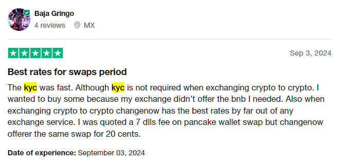 But keep in mind that even the best systems can hiccup, and in rare instances, even legitimate transactions might trigger ChangeNOW's KYC process. However, users who have experienced this issue often say that KYC is quick and painless, just like this example.