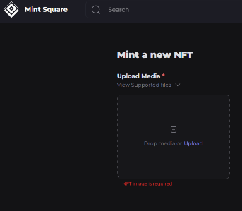 -Mint NFT on MintSquare, click "mint", and upload one picture to mint a new NFT.