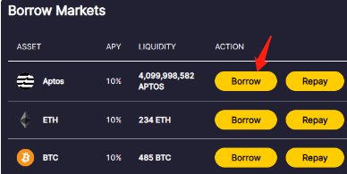 - Step 3: Borrow - click on "Borrow Markets" tab on the dashboard and borrow tokens.