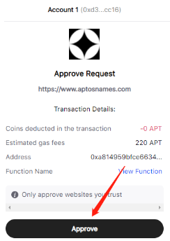 - Step 1: Visit the official site of Aptos Name Service(ANS). Click on "Connect", then click "Approve" on the pop-up window of Martian Wallet.