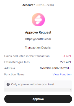 - Step 1: Visit the official site of Souffl3. Click on "Connect", then click "Approve" on the pop-up window of Martian Wallet.