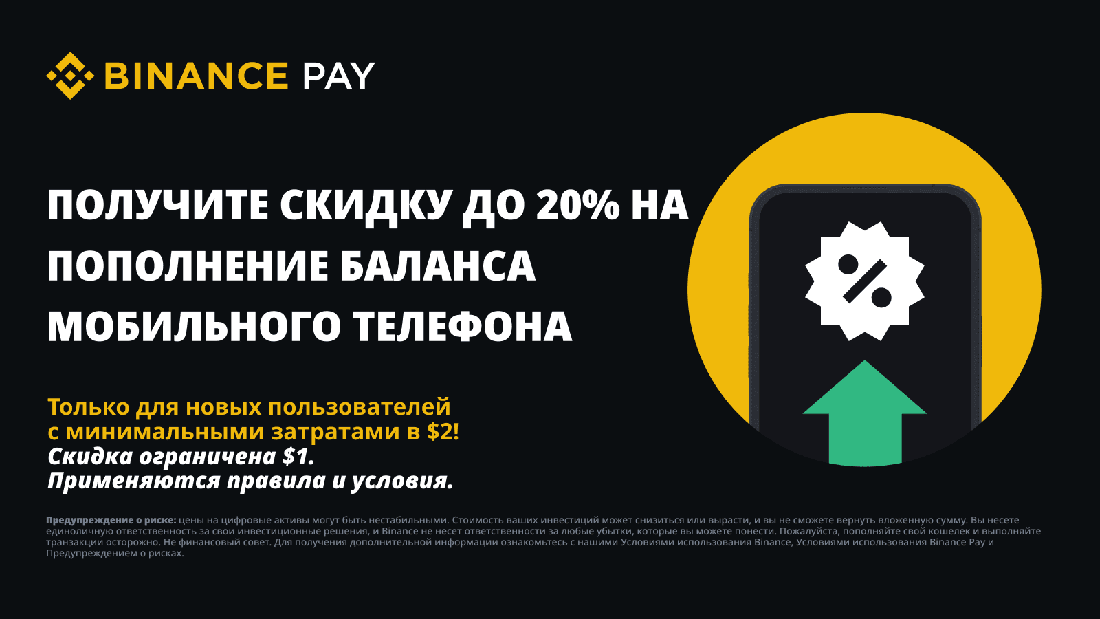 Промоакция Binance Pay: получите скидку до 20% на пополнение баланса мобильного телефона
