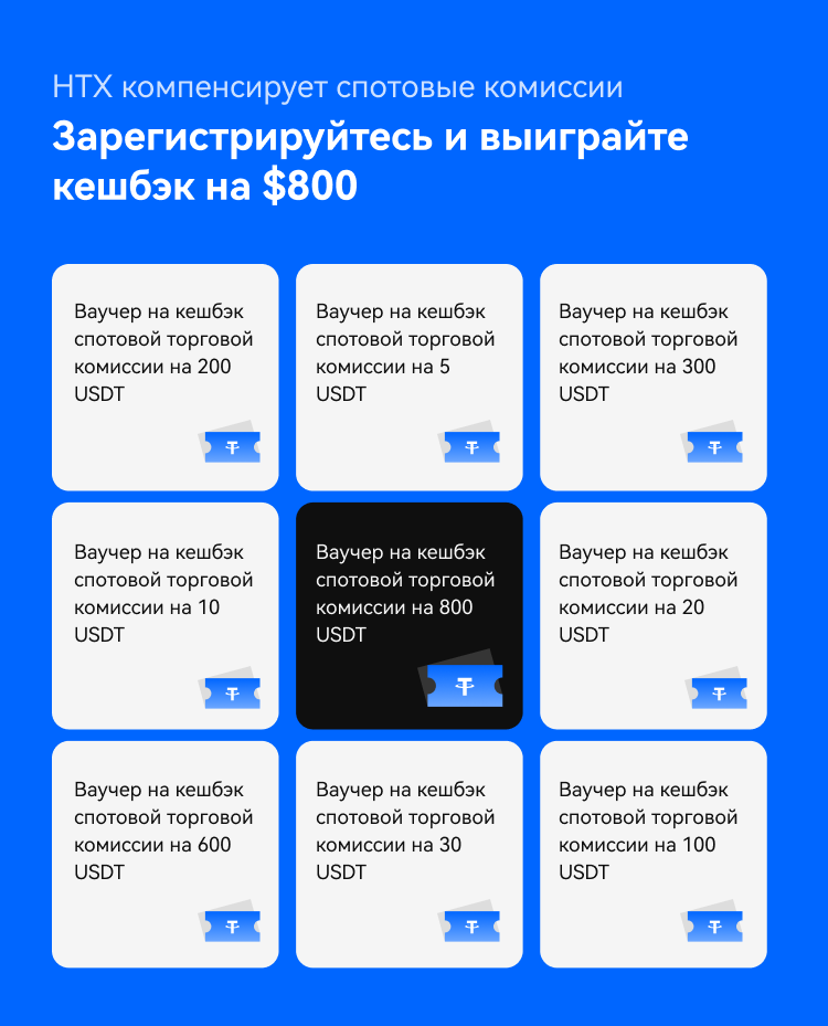 Слишком высокие торговые комиссии снижают вашу прибыль? HTX поможет это исправить! Зарегистрируйтесь прямо сейчас и получите 1 бесплатную попытку участия в розыгрыше. Приглашайте друзей каждый день и открывайте до 12 дополнительных попыток с гарантированными наградами, чтобы выиграть до $800 в виде ваучеров на кешбэк торговой комиссии для спотовой торговли! Используйте награды, чтобы снижать комиссии и увеличивать прибыль от каждой спотовой сделки!