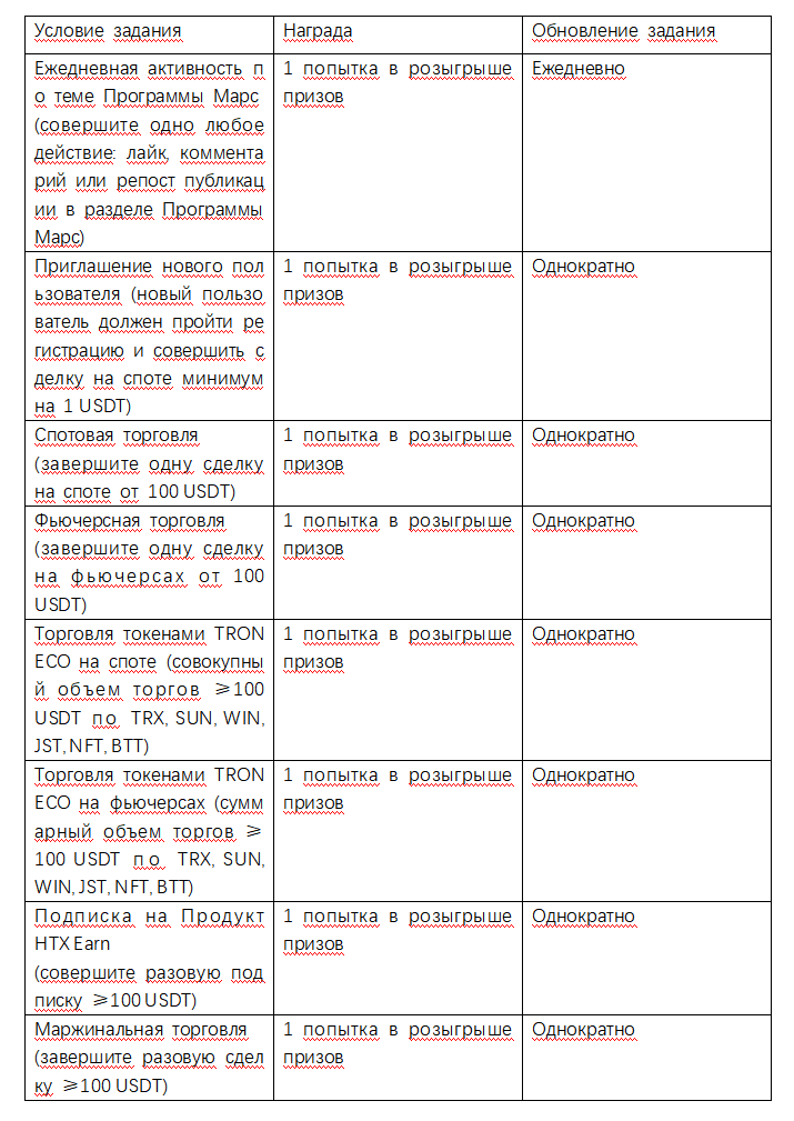 Отпразднуйте 12-летие HTX вместе с розыгрышем Программы Марс, который стартует 10 июля 2025 года. Присоединяйтесь и получайте шанс выиграть ценные призы! Подробности — в таблице ниже: