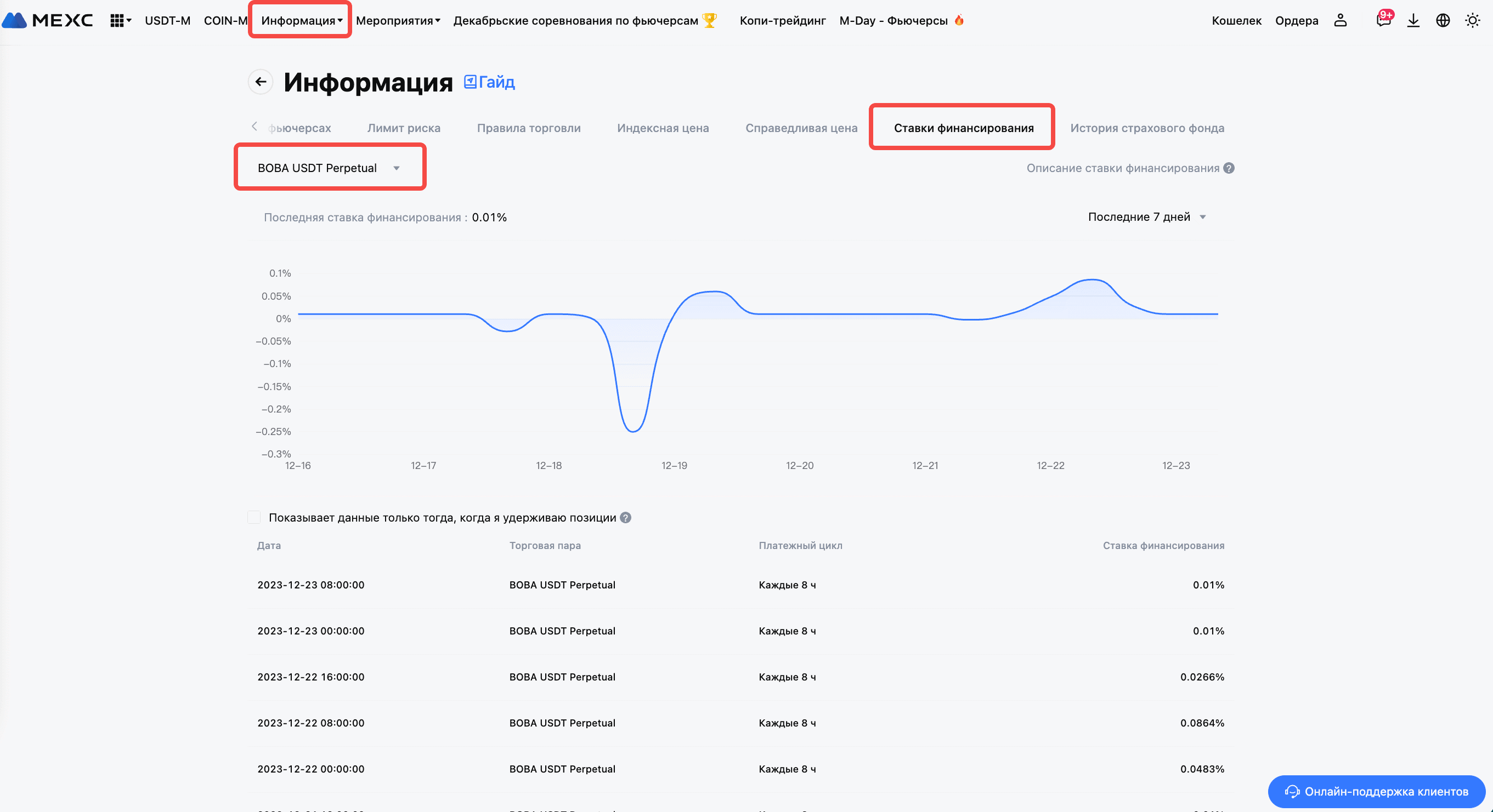 Актуальную информацию о ставках финансирования можно найти в следующем разделе: