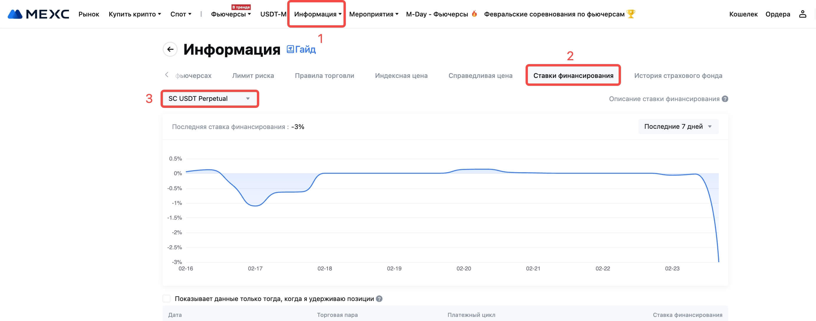 Последняя информация о ставках финансирования приведена в разделе Информация - История ставок финансирования.