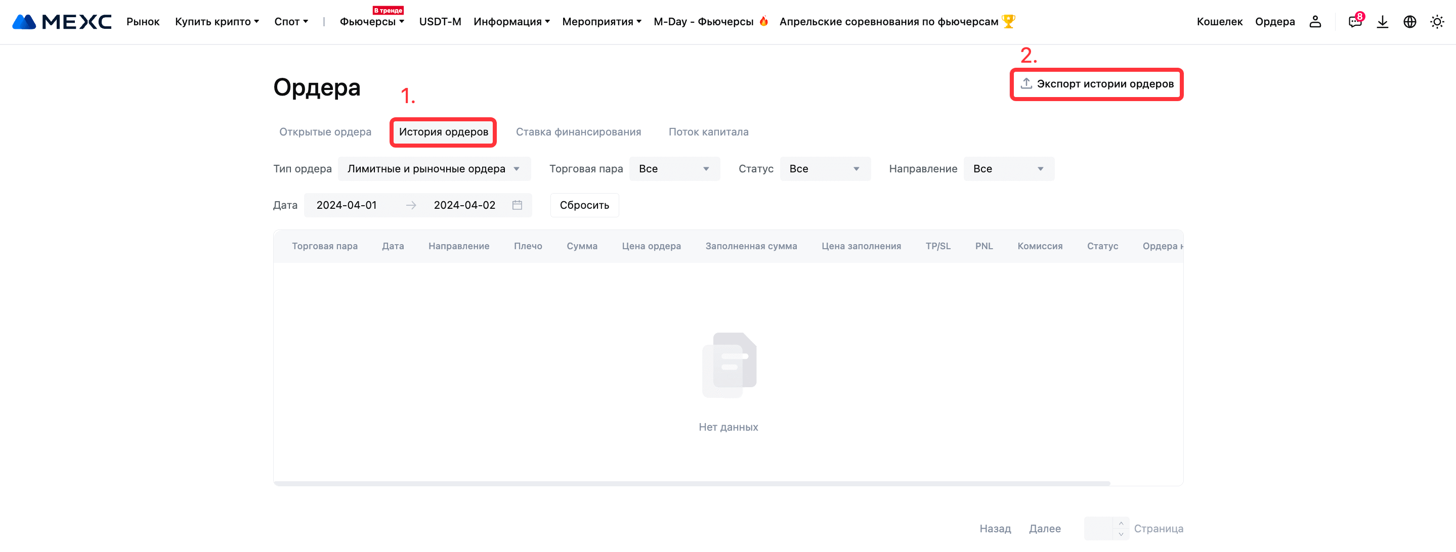 История фьючерсных ордеров и потока капитала MEXC теперь поддерживают функцию экспорта PDF (17 апреля 2024 г.).