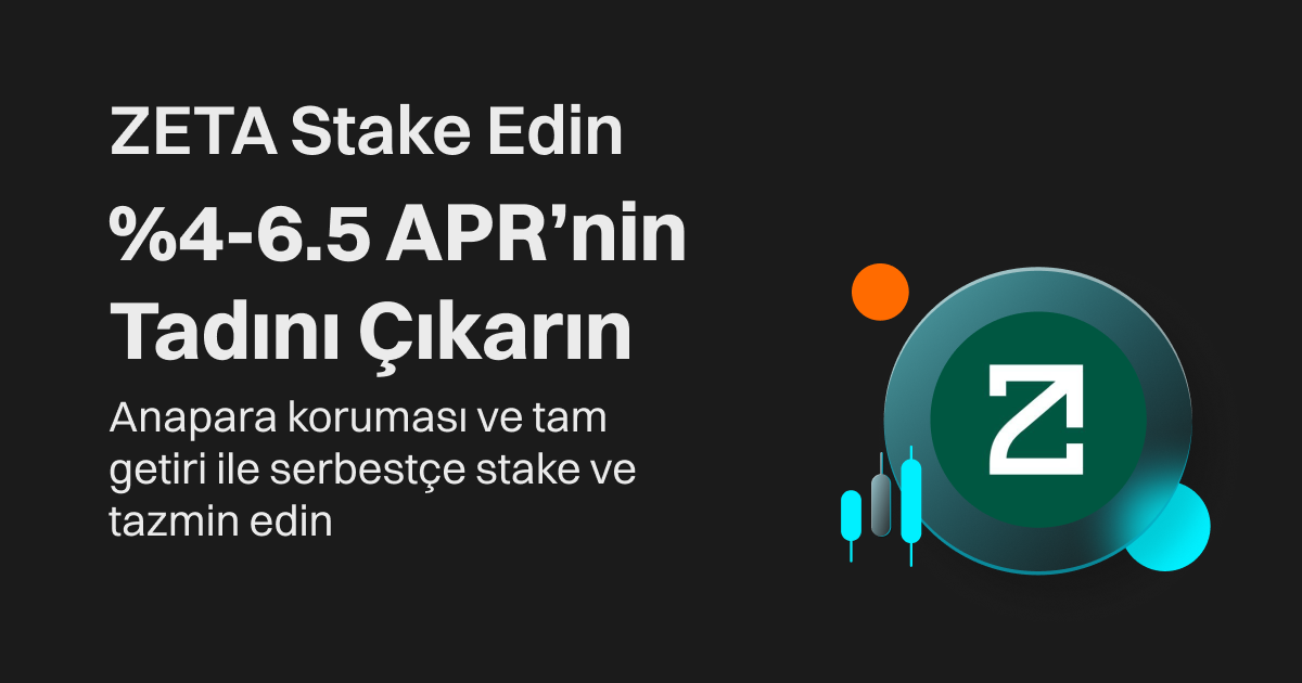 Ana sayfa üst gezinme çubuğunda Kazan'ı bulun > Staking'i seçin > ZETA'ı seçin ve %4-6.5 APR'nin keyfini çıkarmak için Stake et'e tıklayın.