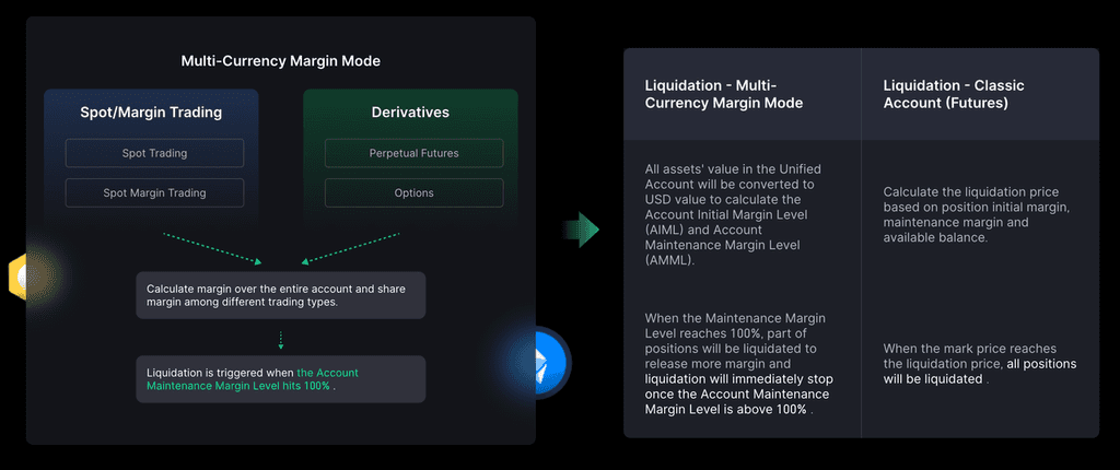 Applicable to spot and spot margin trading, USDT perpetual contracts, delivery contracts, and options. When the collateral assets in the account are converted to USD, trading products with the same or different settlement currencies can share margin. Profits and losses can offset each other, and floating profits can be used to open new positions.