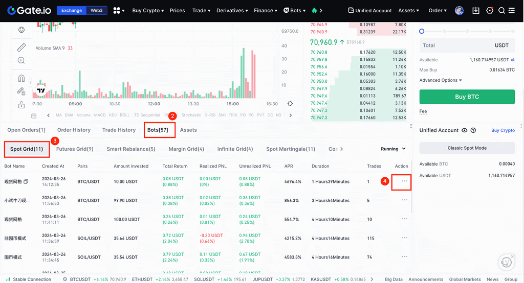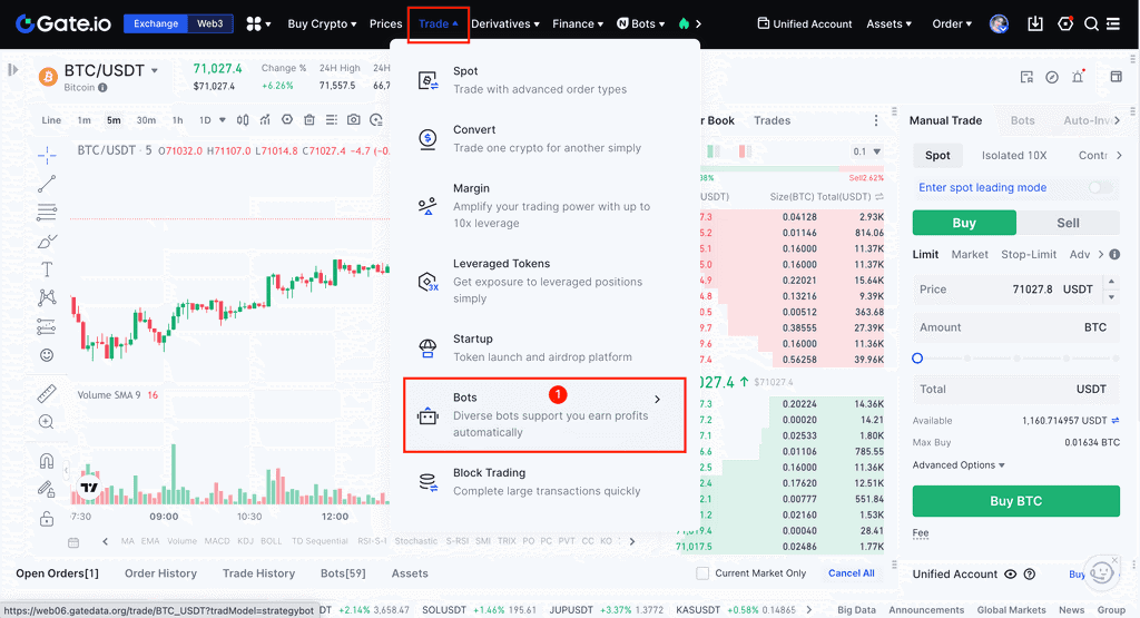 **1. **Gate web sitesine giriş yapın ve Trading Robot'un K-line arayüzüne erişmek için [Trading - Trading Robot] bölümüne gidin.