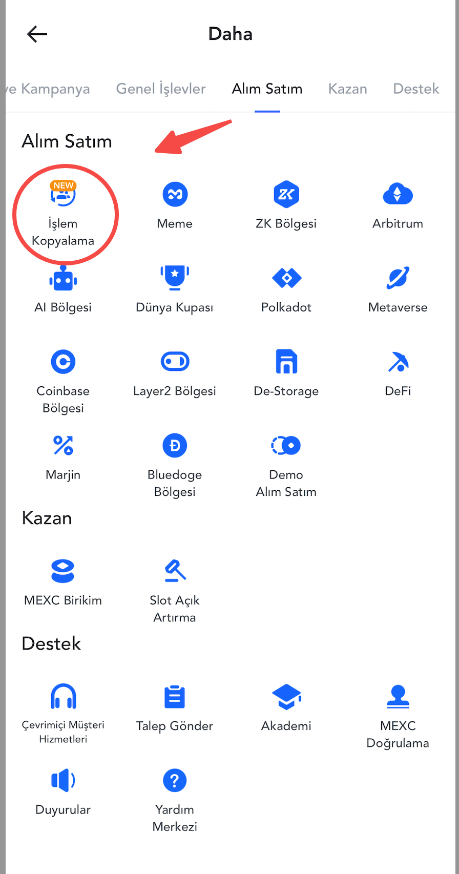 İşlem Kopyalama Sayfası: Uygulama Ana Sayfası > Daha > Alım Satım > İşlem Kopyalama
