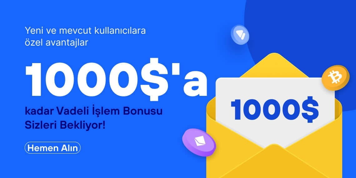 - Vadeli işlem bonusları, 15 gün geçerlidir. Ayrıca vadeli alım satımı, işlem veya fonlama ücretlerini düşürmek ve işlem kayıplarını telafi etmek için kullanılabilir. Bonus kullanılarak yapılan işlemlerden elde edilen kârlar çekilebilir fakat bonusun kendisi çekilemez. Vadeli işlem hesabından yapılan herhangi bir varlık transferi, bonusların silinmesine yol açacaktır. Lütfen vadeli işlem bonuslarının iptal edilmesinden kaynaklanan likidasyon risklerine karşı dikkatli olun.