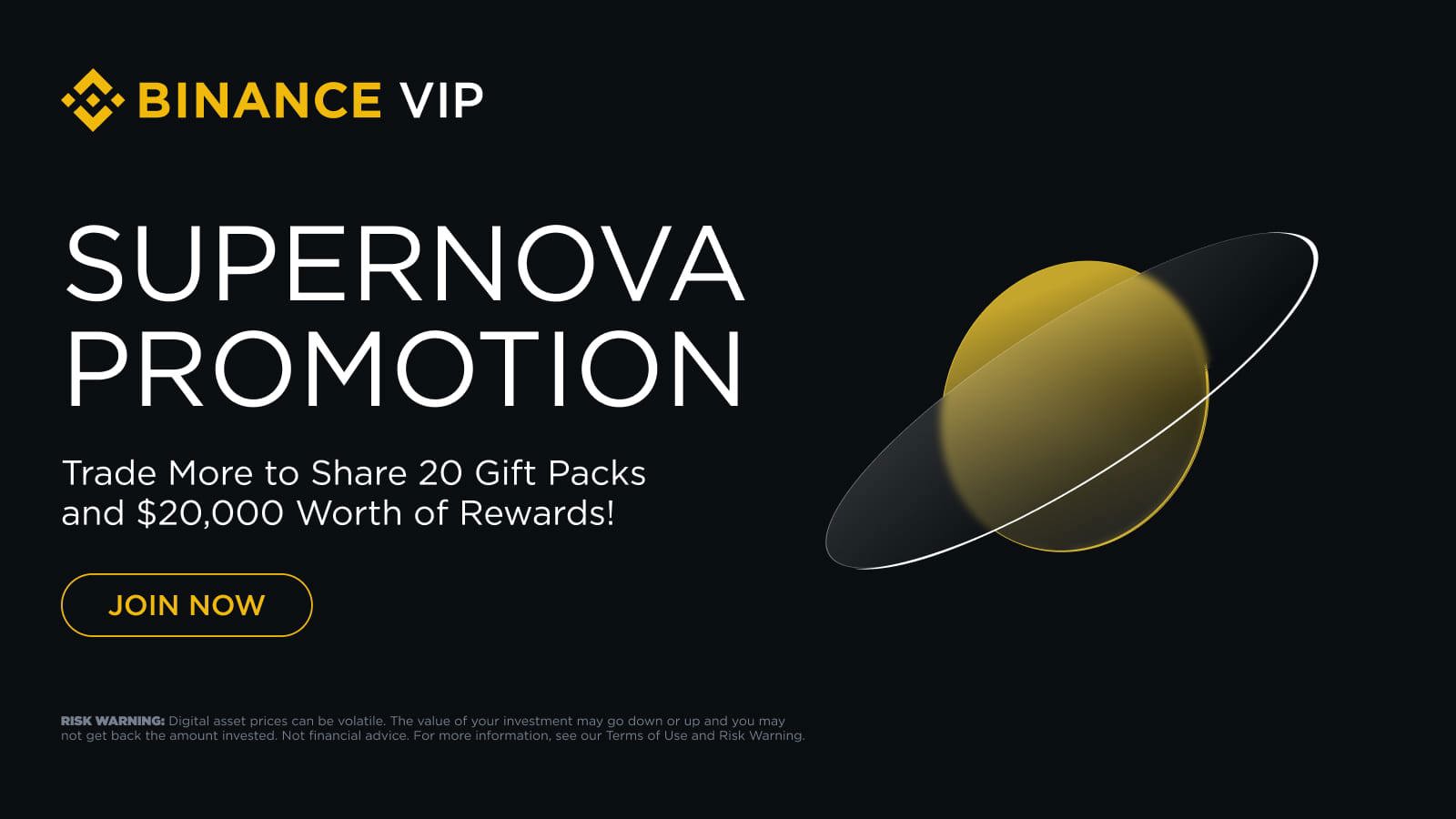 Промоакція програми \"Супернова\" від Binance VIP: торгуйте більше й розділіть 20 подарункових наборів та винагороди на суму 20 000 $!