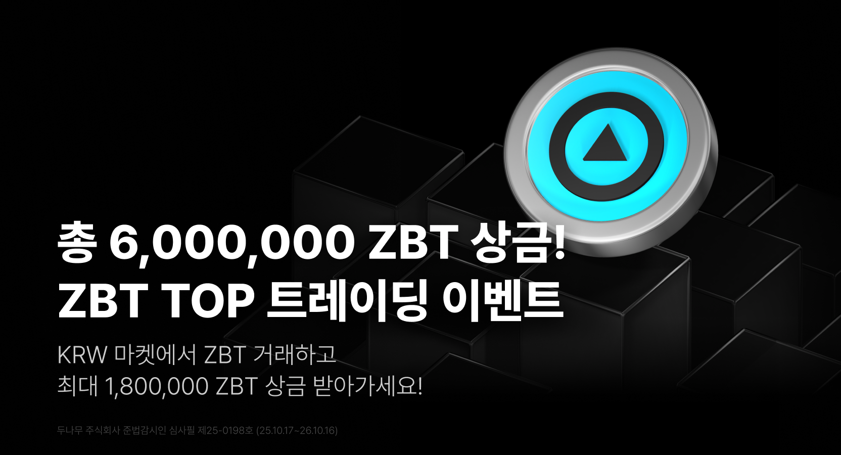 제로베이스(ZBT) 거래지원 기념 TOP 트레이딩 이벤트를 준비했습니다!KRW 마켓에서 ZBT 거래하고, 업비트 TOP 트레이더에 도전하세요!