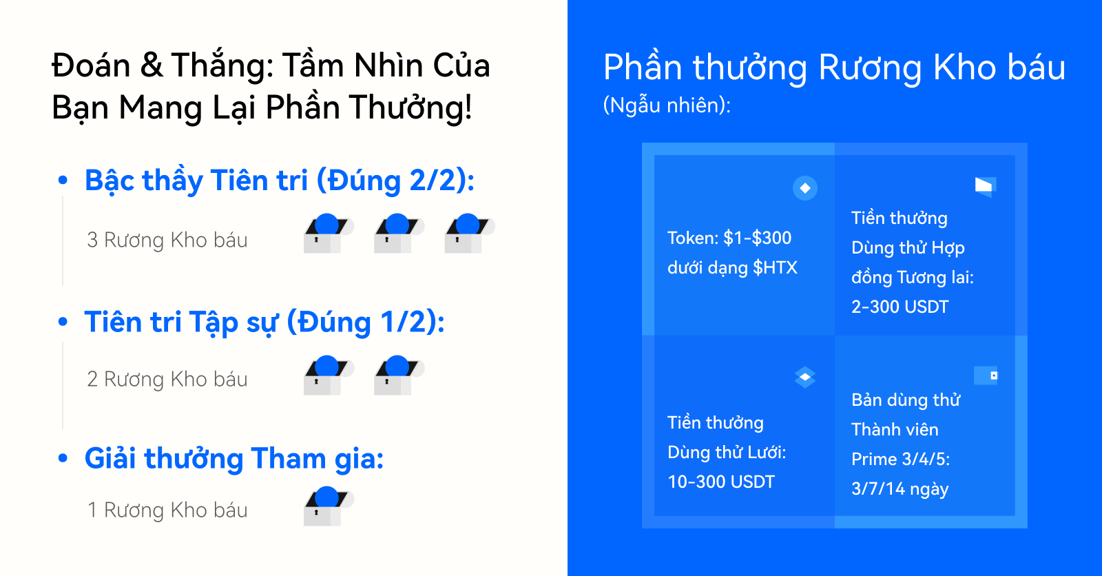 - Phần thưởng phân phối dưới dạng $HTX vào tài khoản HTX của người chiến thắng trong 14 ngày làm việc sau khi sự kiện kết thúc. Nếu người chiến thắng vẫn chưa nhận phần thưởng của họ sau 14 ngày, vui lòng liên hệ với Hỗ trợ Khách hàng trực tuyến 24/7 của chúng tôi hoặc gửi email tới [email protected] để được hỗ trợ.