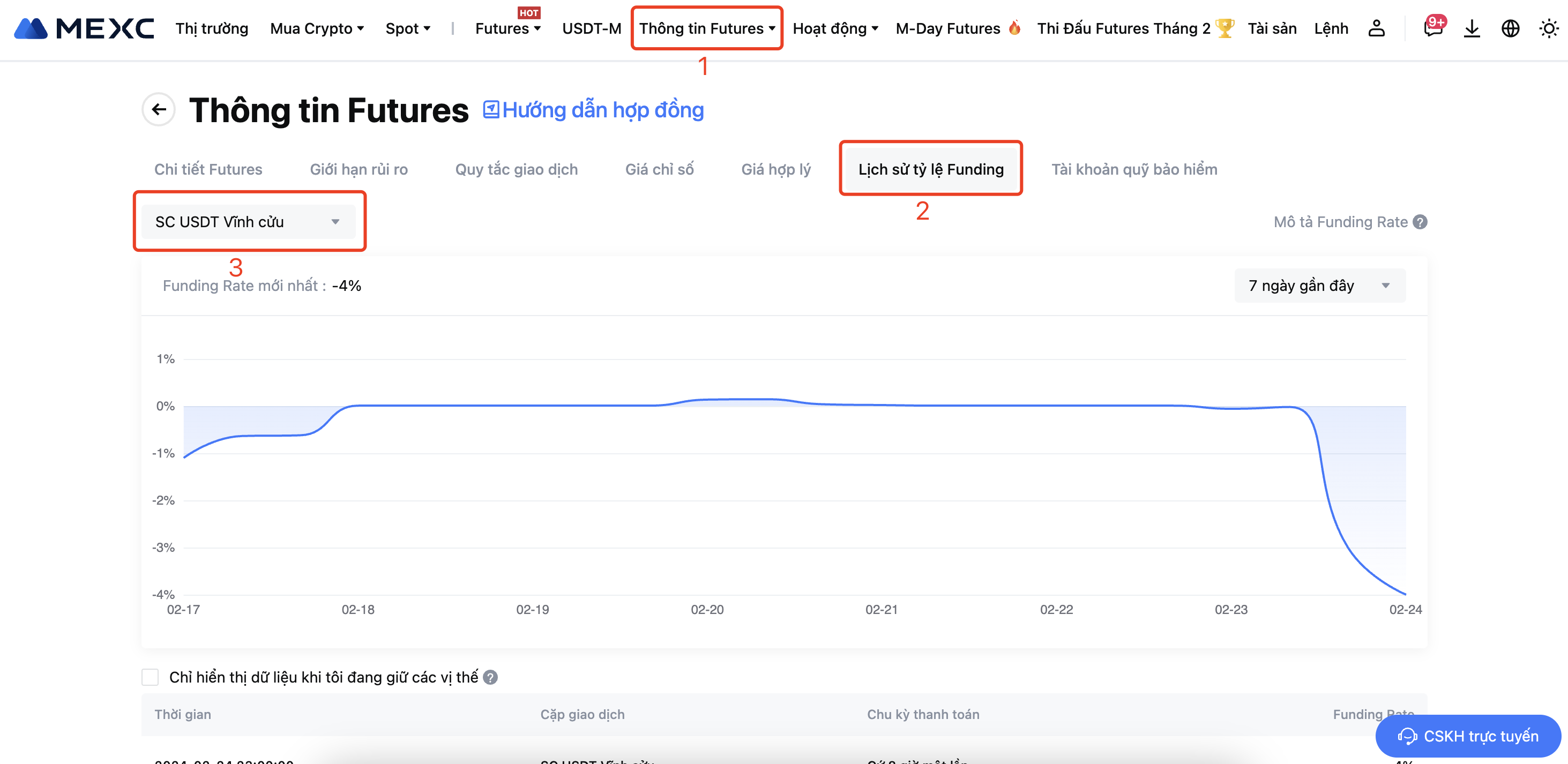 Để biết chi tiết tỷ lệ Funding mới nhất, vui lòng tham khảo Thông tin Futures - Lịch sử tỷ lệ Funding.